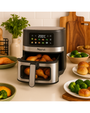 La freidora de aire NF17 de 6,5L combina potencia y capacidad para lograr resultados profesionales en casa. Con 2200W y cocción 360°, prepara alimentos crujientes y saludables con hasta un 85% menos de grasa. Su panel digital con 10 menús automáticos, doble grill y ventana visible aseguran control y precisión en cada receta. Gracias a su cavidad metálica, seguridad integrada y fácil limpieza en lavavajillas, es la aliada ideal para una cocina práctica, saludable y versátil.