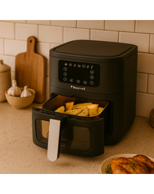 La freidora de aire NF15 de 5,5L combina un diseño compacto con tecnología avanzada para obtener resultados más uniformes y crujientes. Con 1500W de potencia y cocción 360°, ofrece comidas saludables con hasta un 85% menos de grasa. Incorpora doble resistencia y grill arriba/abajo, que permiten un horneado más homogéneo. Su panel digital táctil con 7 programas, ventana visible y cavidad metálica garantizan control, durabilidad y facilidad de uso. Apta para lavavajillas y fabricada con materiales libres de BPA y PFOA, es práctica, segura y confiable.