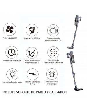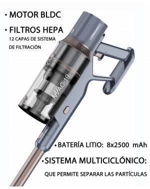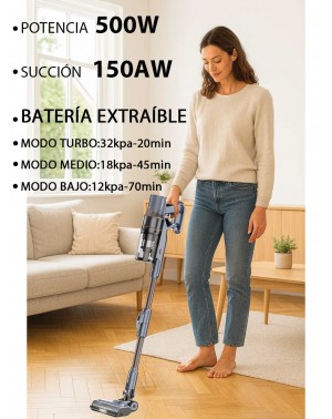 El aspirador inalámbrico NARVI NVAC 19 combina potencia, ligereza y autonomía para una limpieza diaria sin esfuerzo. Su motor BLDC de 500W alcanza una succión de 32 Kpa (150AW), eliminando polvo, ácaros y alérgenos con máxima eficiencia. Con batería extraíble de 29.6V y hasta 70 minutos de uso continuo, podrás limpiar toda la casa sin interrupciones. Su cepillo multicabezal con diseño antienredos en V y filtro HEPA lo convierten en un aliado perfecto contra alergias. Además, su diseño ultraligero de solo 1,7 kg y la luz LED para detectar polvo facilitan una experiencia de limpieza práctica y completa.