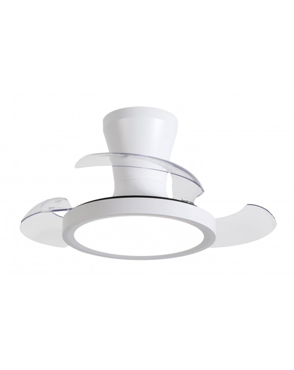 Te presentamos un ventilador de diseño moderno y funcional, ideal para cualquier  espacio. Con un chasis de policarbonato color BLANCO, y palas transparentes retráctiles, ofrece ligereza pero una muy buena presencia, y un rendimiento eficiente con un motor DC de bajo consumo (24W) y 460 RPM. Su fuente de luz LED de intensidad regulable (20W)  permite ajustar la temperatura de color  (3000K-4200K-6500K), mientras que su memoria de color mantiene la luz constante.