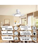 Tiene 3 palas retráctiles, 6 velocidades ajustables y control de aire para verano e invierno, ofrece versatilidad durante todo el año. Además, incluye temporizador (2, 4, 8 horas) y mando a distancia. Su flujo de iluminación de 6.480 lúmenes lo hacen perfecto para cualquier habitación, con una vida útil de 30.000 horas. Con un peso neto de 4 Kg y un diseño fácil de instalar, es la opción ideal para tu hogar u oficina.