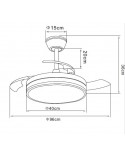Ventilador retráctil de Techo NARVI con luz LED. Sus preciosos aros de luz decorativos iluminados le dan un toque de elegancia a este ventilador que además, cuenta con un CABEZAL ILUMINADO, con función de 3 tonos de luz (3000K-4200K-6000K) que funciona independiente del ventilador, con accionamiento de botón en el mando a distancia. Referencia EDIMBURGO 1854-40 WH CABEZAL