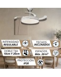 Tiene 3 palas retráctiles, 6 velocidades ajustables y control de aire para verano e invierno, ofrece versatilidad durante todo el año. Además, incluye temporizador (2, y 4, horas) y mando a distancia. Su altura ajustable y su flujo de iluminación de 6.480 lúmenes lo hacen perfecto para cualquier habitación, con una vida útil de 30.000 horas. Con un peso neto de 5,9 kg y un diseño fácil de instalar, es la opción ideal para tu hogar u oficina.