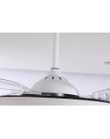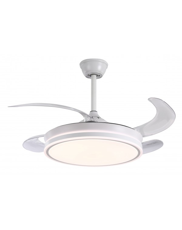 Te presentamos un ventilador de diseño moderno y funcional, ideal para cualquier espacio. Con un chasis metálico blanco y palas transparentes, ofrece un rendimiento eficiente con un motor DC de bajo consumo (<30W) y 250 RPM. Su fuente de luz LED regulable (36W x 2) incluye bombillas y permite ajustar la temperatura de color (3000K-4200K-6500K), mientras que su memoria de color mantiene la luz constante. Con 4 palas retráctiles, 6 velocidades ajustables y control de aire para verano e invierno, ofrece versatilidad durante todo el año. Además, incluye temporizador (2, 4, 8 horas) y mando a distancia. Su altura ajustable y su flujo de iluminación de 6.480 lúmenes lo hacen perfecto para cualquier habitación, con una vida útil de 30.000 horas. Con un peso neto de 7,8 kg y un diseño fácil de instalar, es la opción ideal para tu hogar u oficina.