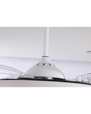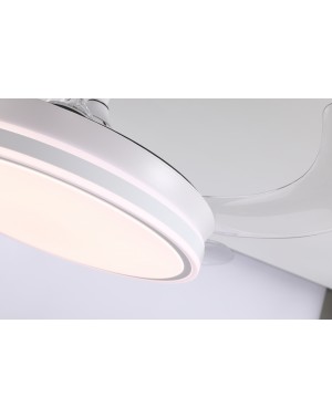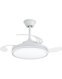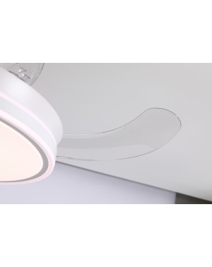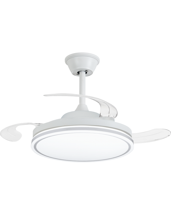 Te presentamos un ventilador de diseño moderno y funcional, ideal para cualquier espacio. Con un chasis de policarbonato color BLANCO, y palas transparentes retráctiles, ofrece ligereza pero una muy buena presencia, y un rendimiento eficiente con un motor DC de bajo consumo (<30W) y 253 RPM. Su fuente de luz LED de intensidad regulable (45W x 2) permite ajustar la temperatura de color (3000K-4200K-6500K), mientras que su memoria de color mantiene la luz constante.