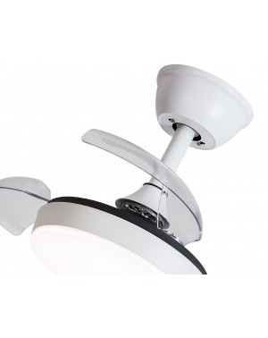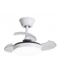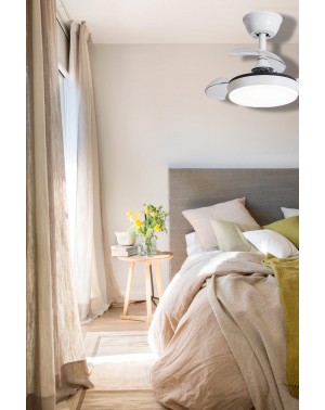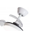 Te presentamos un ventilador de diseño moderno y funcional, ideal para cualquier espacio. Con un chasis METÁLICO blanco y sus palas transparentes, ofrece un rendimiento eficiente con un motor DC de bajo consumo (<30W) y 250 RPM. Su fuente de luz LED regulable (36W x 2) incluye bombillas y permite ajustar la temperatura de color (3000K-4200K-6500K), mientras que su memoria de color mantiene la luz constante. Con 3 palas retráctiles, 6 velocidades ajustables y control de aire para verano e invierno, ofrece versatilidad durante todo el año. Además, incluye temporizador (2, 4, 8 horas) y mando a distancia. Su altura ajustable y su flujo de iluminación de 6.480 lúmenes lo hacen perfecto para cualquier habitación, con una vida útil de 30.000 horas. Con un peso neto de 7,8 kg y un diseño fácil de instalar, es la opción ideal para tu hogar u oficina.
